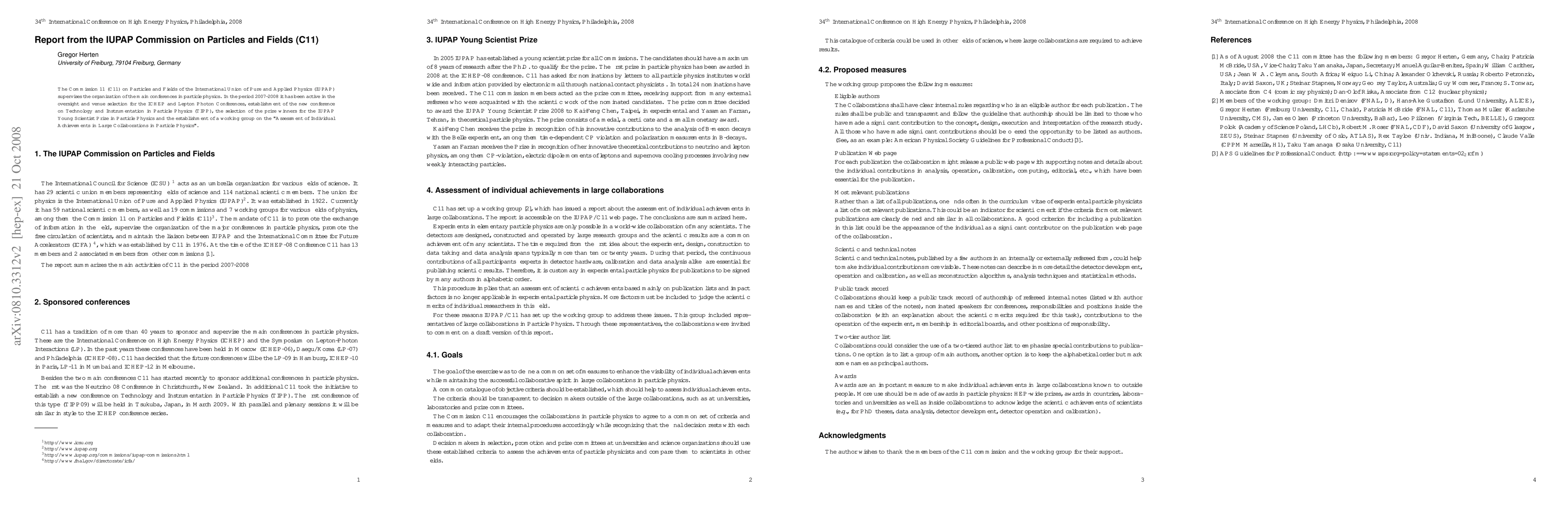The Commission 11 (C11) on Particles and Fields of the International Union of Pure and Applied Physics (IUPAP) supervises the organization of the main conferences in particle physics. In the period 2007-2008 it has been active in the oversight and venue selection for the ICHEP and Lepton Photon Conferences, establishment of the new conference on Technology and Instrumentation in Particle Physics (TIPP), the selection of the prize winners for the IUPAP Young Scientist Prize in Particle Physics and the establishment of a working group on the "Assessment of Individual Achievements in Large Collaborations in Particle Physics".