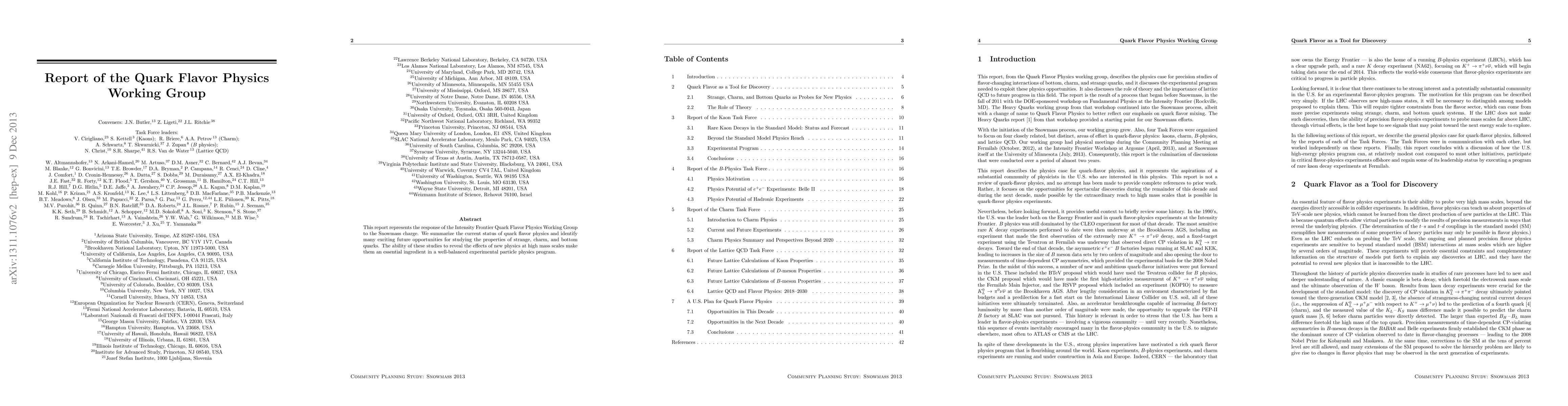 This report summarizes the current state of quark flavor physics and highlights future opportunities for studying strange, charm, and bottom quarks, emphasizing their potential to uncover new physics at high mass scales. It underscores the importance of these studies for a comprehensive experimental particle physics program.