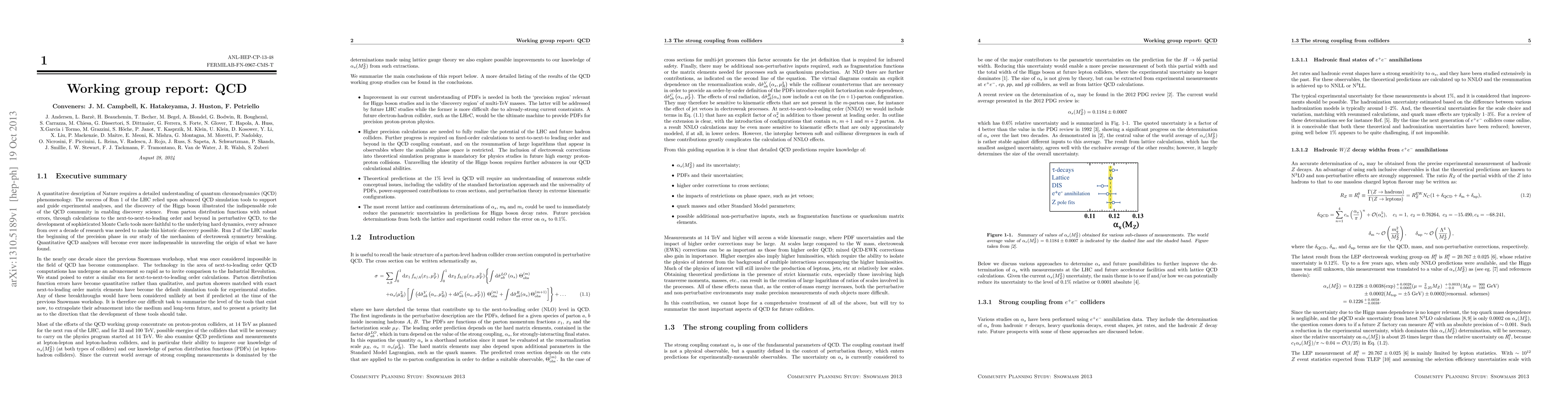 This is the summary report of the energy frontier QCD working group prepared for Snowmass 2013. We review the status of tools, both theoretical and experimental, for understanding the strong interactions at colliders. We attempt to prioritize important directions that future developments should take. Most of the efforts of the QCD working group concentrate on proton-proton colliders, at 14 TeV as planned for the next run of the LHC, and for 33 and 100 TeV, possible energies of the colliders that will be necessary to carry on the physics program started at 14 TeV. We also examine QCD predictions and measurements at lepton-lepton and lepton-hadron colliders, and in particular their ability to improve our knowledge of strong coupling constant and parton distribution functions.
