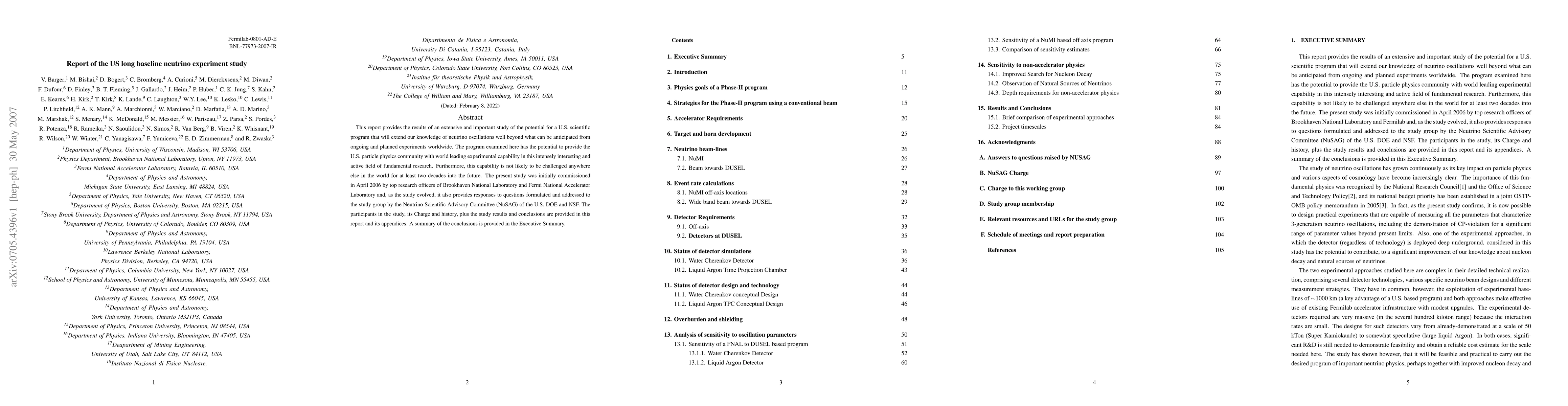 This report provides the results of an extensive and important study of the potential for a U.S. scientific program that will extend our knowledge of neutrino oscillations well beyond what can be anticipated from ongoing and planned experiments worldwide. The program examined here has the potential to provide the U.S. particle physics community with world leading experimental capability in this intensely interesting and active field of fundamental research. Furthermore, this capability could be unique compared to anywhere else in the world because of the available beam intensity and baseline distances. The present study was initially commissioned in April 2006 by top research officers of Brookhaven National Laboratory and Fermi National Accelerator Laboratory and, as the study evolved, it also provided responses to questions formulated and addressed to the study group by the Neutrino Scientific Advisory Committee (NuSAG) of the U.S. DOE and NSF. The participants in the study, its Charge and history, plus the study results and conclusions are provided in this report and its appendices. A summary of the conclusions is provided in the Executive Summary.