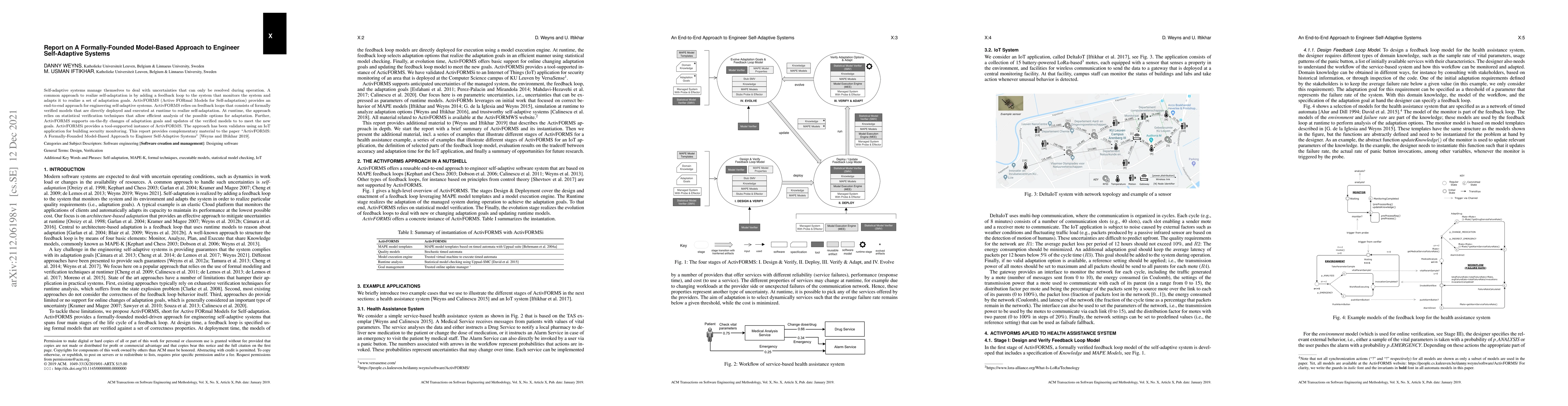 Self-adaptive systems manage themselves to deal with uncertainties that can only be resolved during operation. A common approach to realize self-adaptation is by adding a feedback loop to the system that monitors the system and adapts it to realize a set of adaptation goals. ActivFORMS (Active FORmal Models for Self-adaptation) provides an end-to-end approach for engineering self-adaptive systems. ActivFORMS relies on feedback loops that consists of formally verified models that are directly deployed and executed at runtime to realize self-adaptation. At runtime, the approach relies on statistical verification techniques that allow efficient analysis of the possible options for adaptation. Further, ActivFORMS supports on-the-fly changes of adaptation goals and updates of the verified models to to meet the new goals. ActivFORMSi provides a tool-supported instance of ActivFORMS. The approach has been validates using an IoT application for building security monitoring. This report provides complementary material to the paper ``ActivFORMS: A Formally-Founded Model-Based Approach to Engineer Self-Adaptive Systems'' [Weyns and Iftikhar 2019].