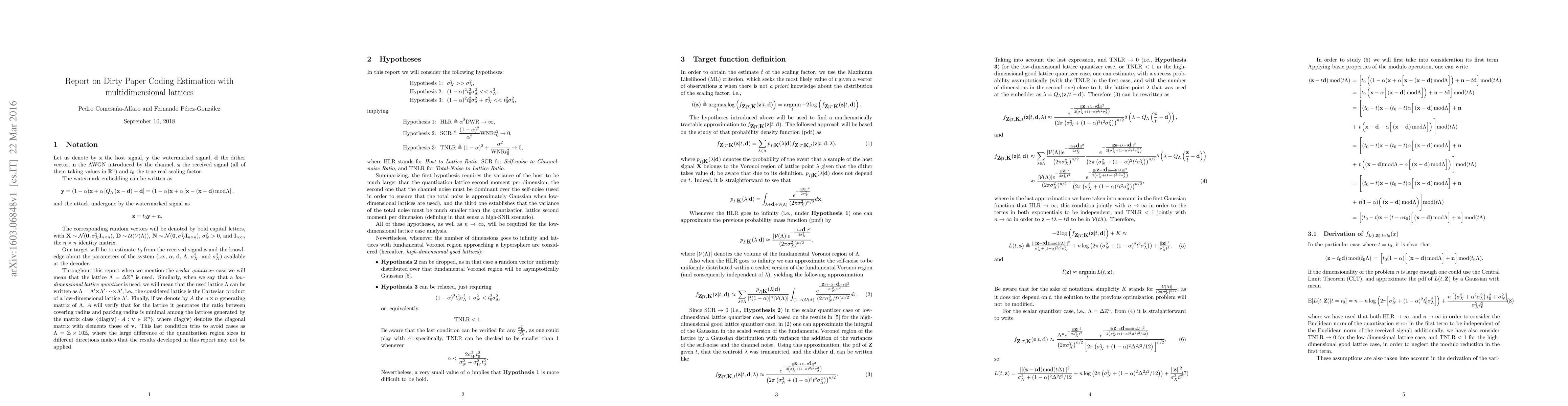 In this report we include some derivations on a channel estimation method based on the use of Dirty Paper Coding. Specifically, we analyze the proposed method, named Dirty Paper-based Channel Estimation (DPCE), when the considered codebooks are high-dimensional lattices.
