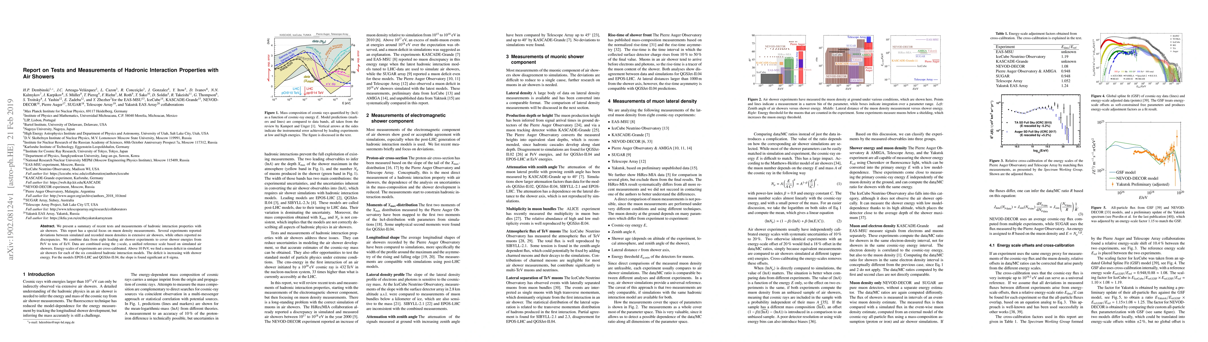 This report summarizes recent tests and measurements of hadronic interaction properties in air showers, particularly focusing on muon density discrepancies. Combining data from eight experiments, a muon deficit in simulated air showers is observed above 10 PeV, with the deficit increasing with energy, especially significant for the EPOS-LHC and QGSJet-II.04 models at 8 sigma.