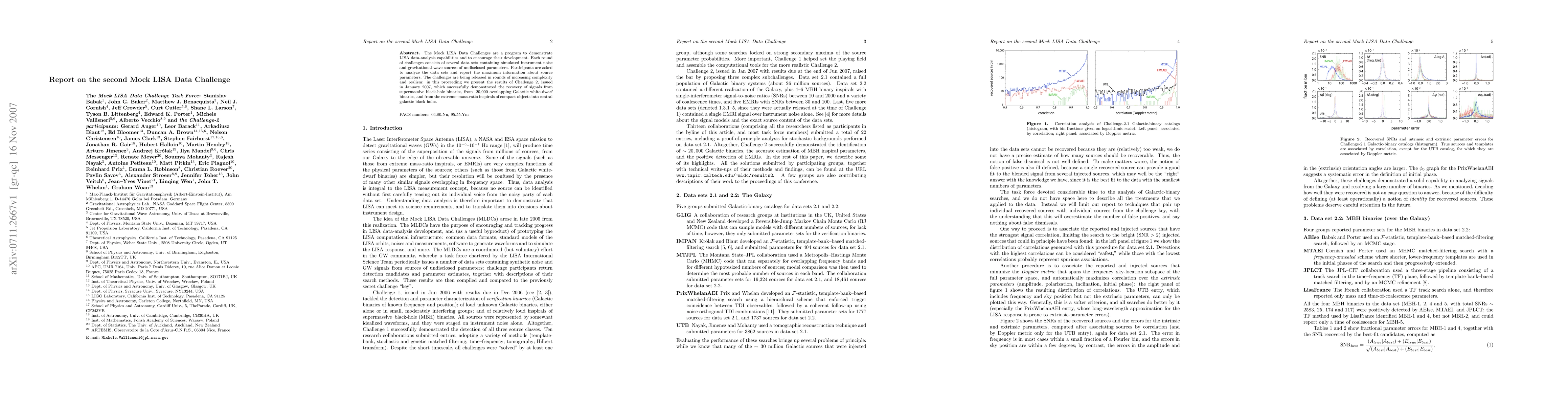 The Mock LISA Data Challenge 2, released in January 2007, tested data-analysis capabilities for gravitational-wave signals, successfully recovering parameters from supermassive black-hole binaries, numerous Galactic white-dwarf binaries, and extreme-mass-ratio inspirals.