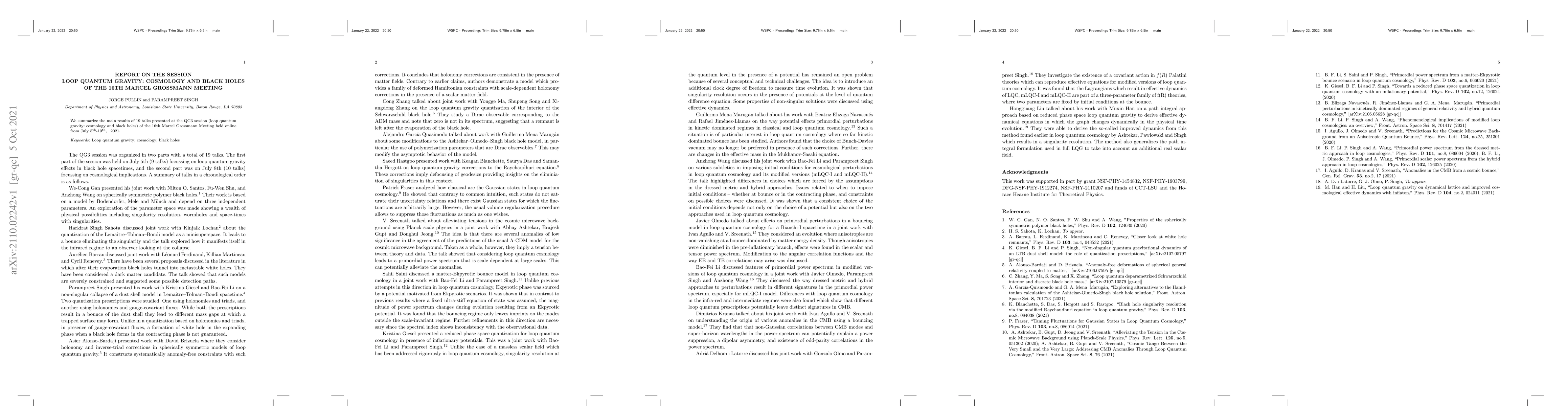This report summarizes key findings from 19 talks at the 16th Marcel Grossmann Meeting's QG3 session on loop quantum gravity, focusing on cosmology and black holes, held online from July 5th-10th, 2021. The discussions highlighted advancements in understanding quantum gravity's implications for the universe's large-scale structure and black hole physics.
