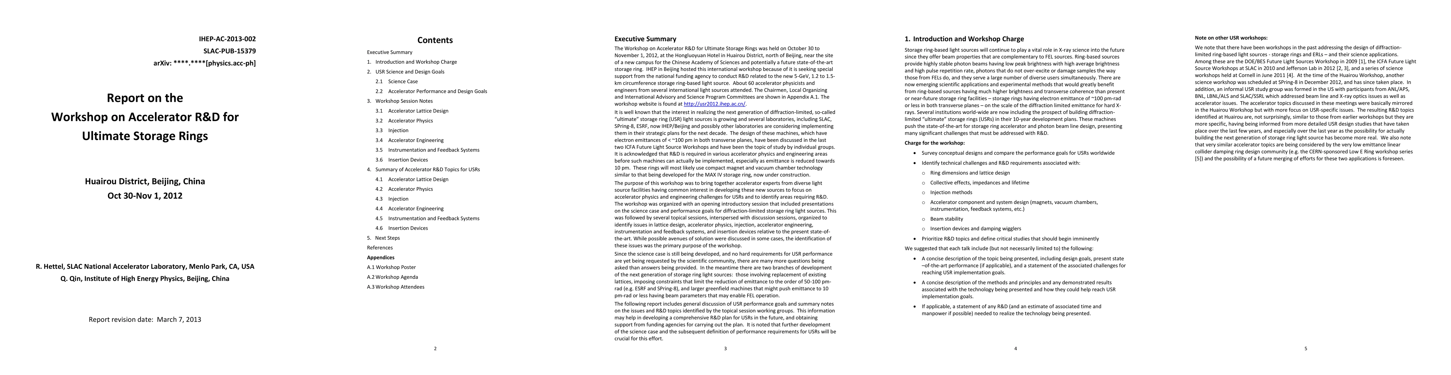 This report summarizes the workshop held in Huairou, Beijing, from October 30 to November 1, 2012, focused on research and development for accelerators in ultimate storage rings. Key discussions and findings from the event are presented.