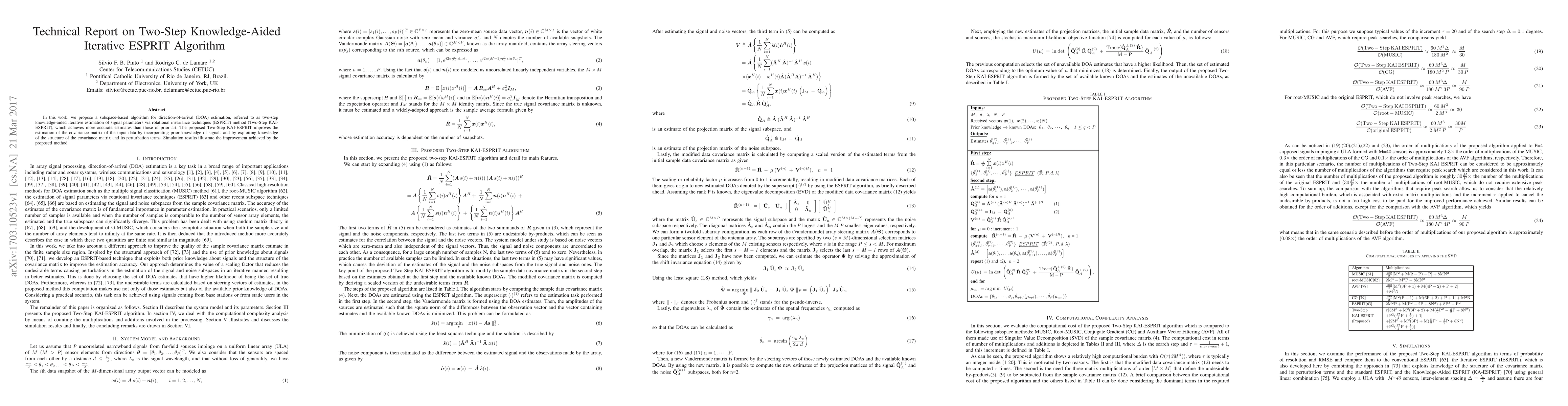 This paper proposes a Two-Step KAI-ESPRIT algorithm for enhanced direction-of-arrival estimation, leveraging prior signal knowledge and covariance matrix structure for improved accuracy over existing methods. Simulation results confirm the method's superior performance.