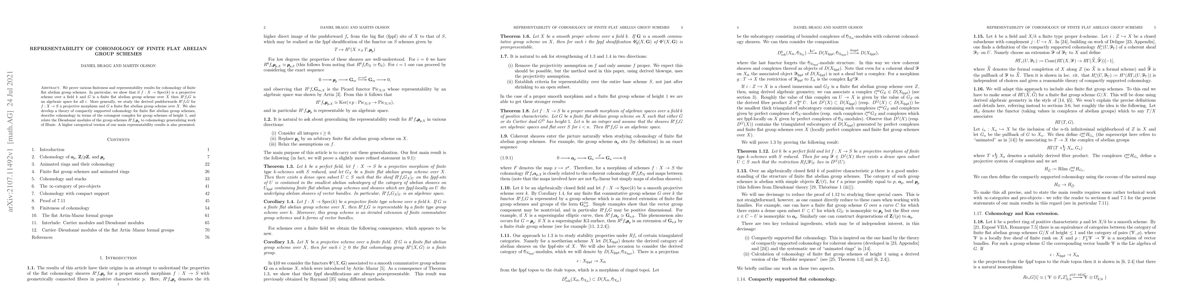 This paper proves finiteness and representability results for the flat cohomology of finite flat abelian group schemes. It demonstrates that derived pushforwards of such schemes are algebraic spaces and develops compactly supported cohomology, relating Dieudonné modules to cohomology.
