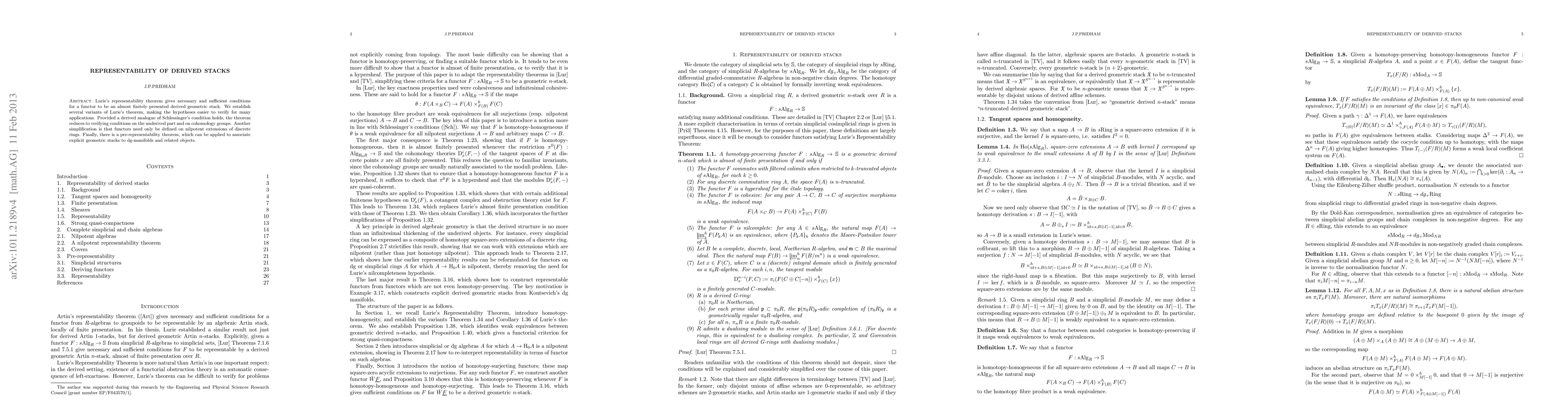Lurie's representability theorem is adapted to facilitate the verification of representability conditions for derived geometric stacks, requiring only checks on underived parts and cohomology groups, with applications to dg-manifolds. The simplified criteria also extend to functors defined on nilpotent extensions of discrete rings.