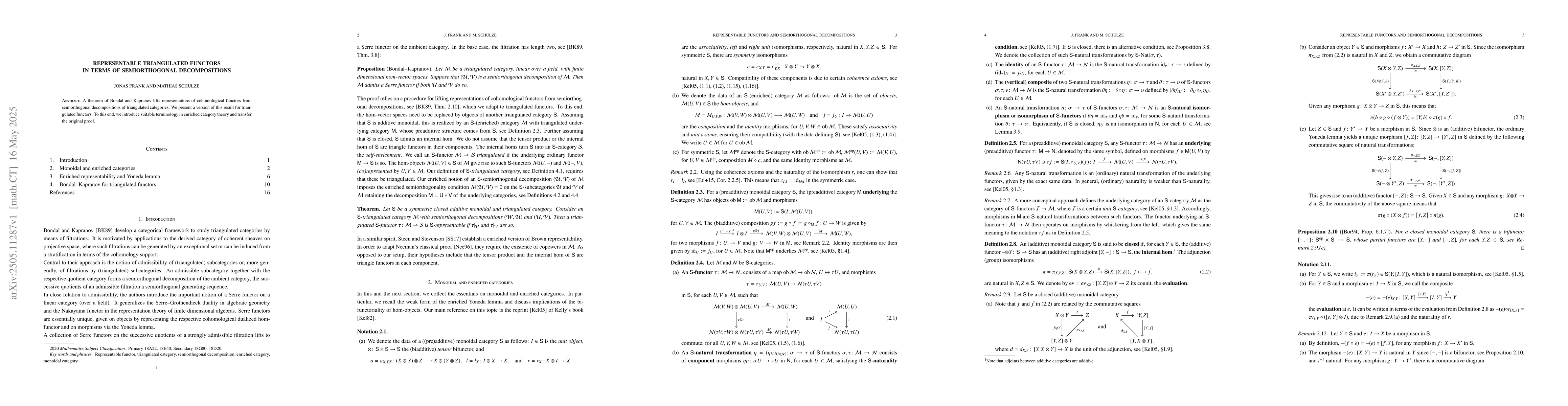 Researchers extend a theorem on semiorthogonal decompositions to representable triangulated functors, providing a new tool for studying triangulated categories in enriched category theory.