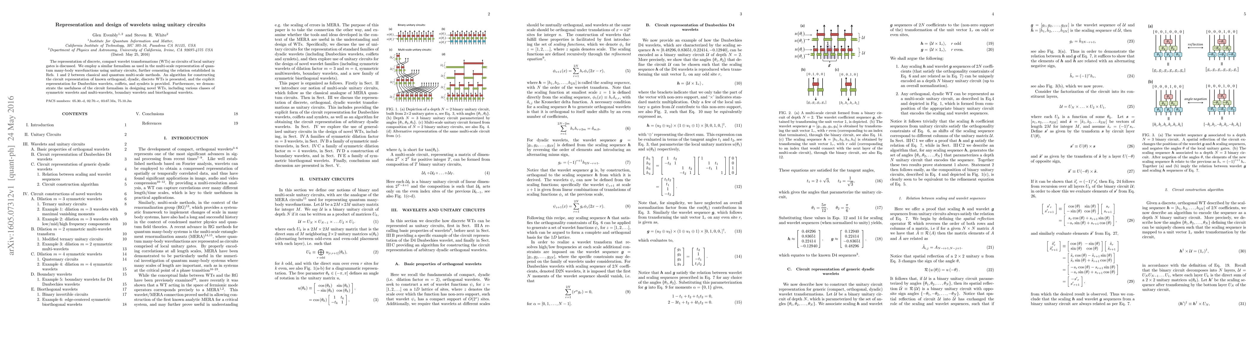 This paper presents a method to represent discrete wavelet transformations (WTs) using local unitary gates, akin to the quantum many-body wavefunction representation. The authors provide an algorithm for constructing these unitary circuit representations for known wavelets and demonstrate its utility in designing novel wavelets.