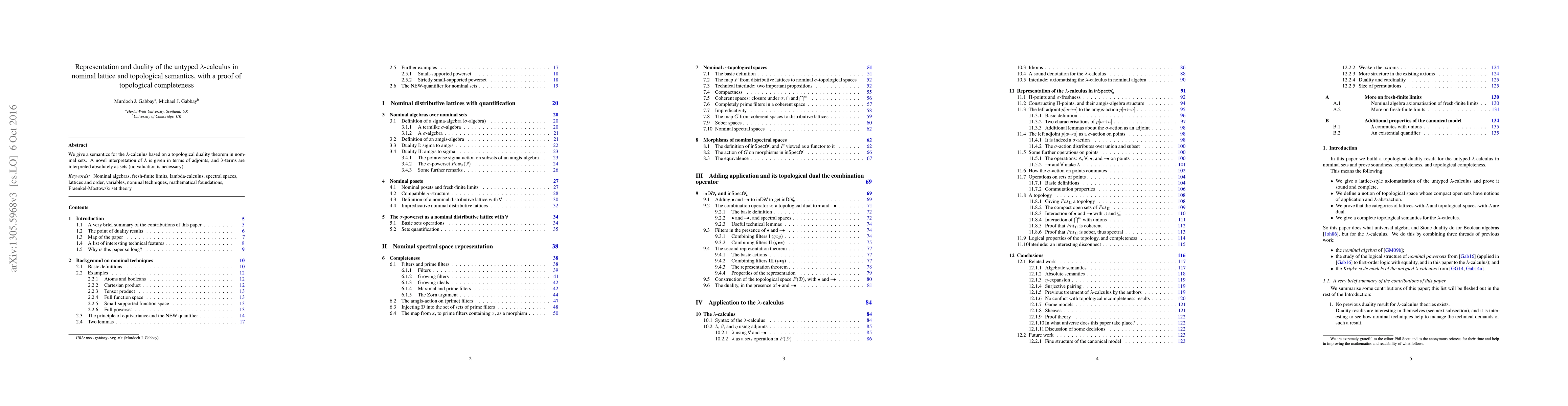 We give a semantics for the lambda-calculus based on a topological duality theorem in nominal sets. A novel interpretation of lambda is given in terms of adjoints, and lambda-terms are interpreted absolutely as sets (no valuation is necessary).