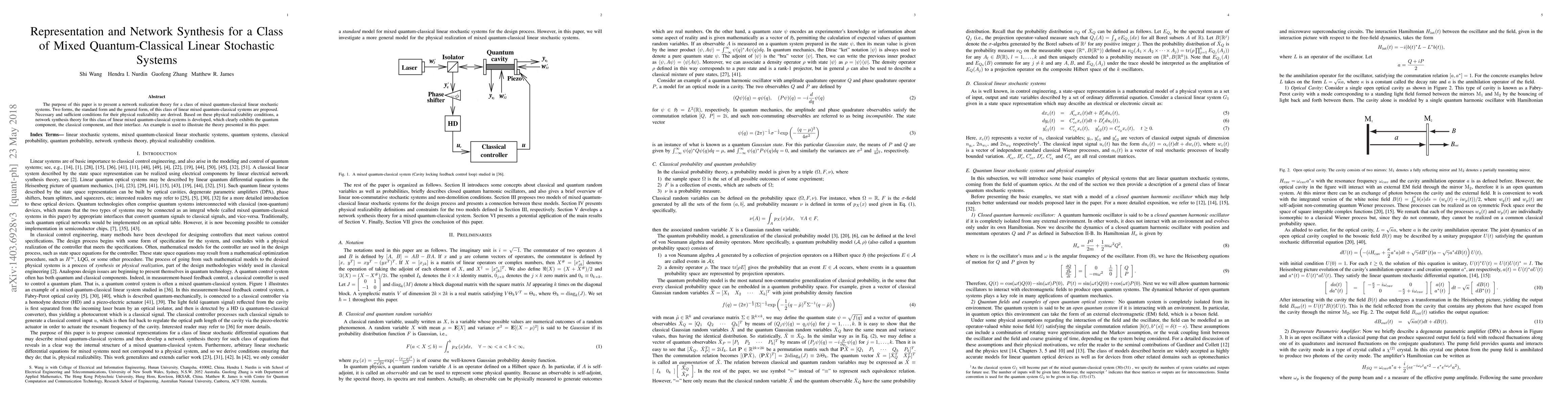The purpose of this paper is to present a network realization theory for a class of mixed quantum-classical linear stochastic systems. Two forms, the standard form and the general form, of this class of linear mixed quantum-classical systems are proposed. Necessary and sufficient conditions for their physical realizability are derived. Based on these physical realizability conditions, a network synthesis theory for this class of linear mixed quantum-classical systems is developed, which clearly exhibits the quantum component, the classical component, and their interface. An example is used to illustrate the theory presented in this paper.