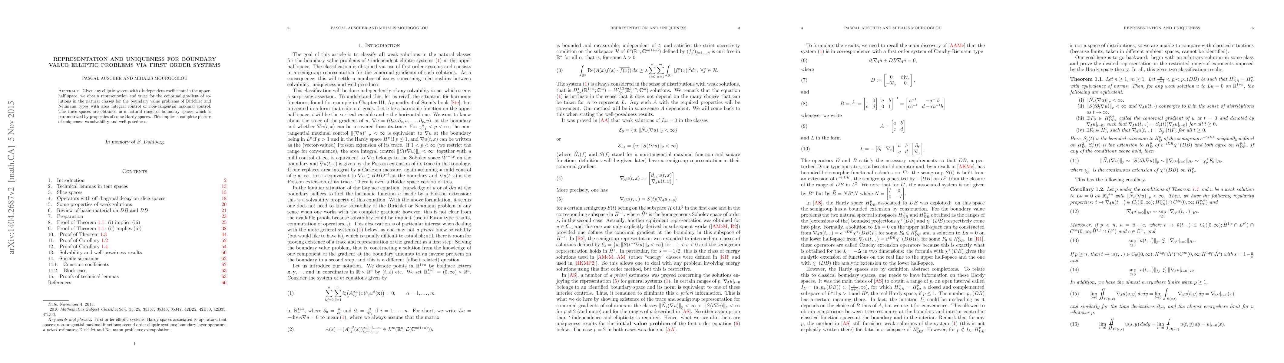 This paper establishes representation and trace theorems for elliptic systems with $t$-independent coefficients in the upper-half space, providing a complete picture of uniqueness, solvability, and well-posedness for Dirichlet and Neumann boundary value problems through the conormal gradient. The trace spaces are linked to properties of Hardy spaces.