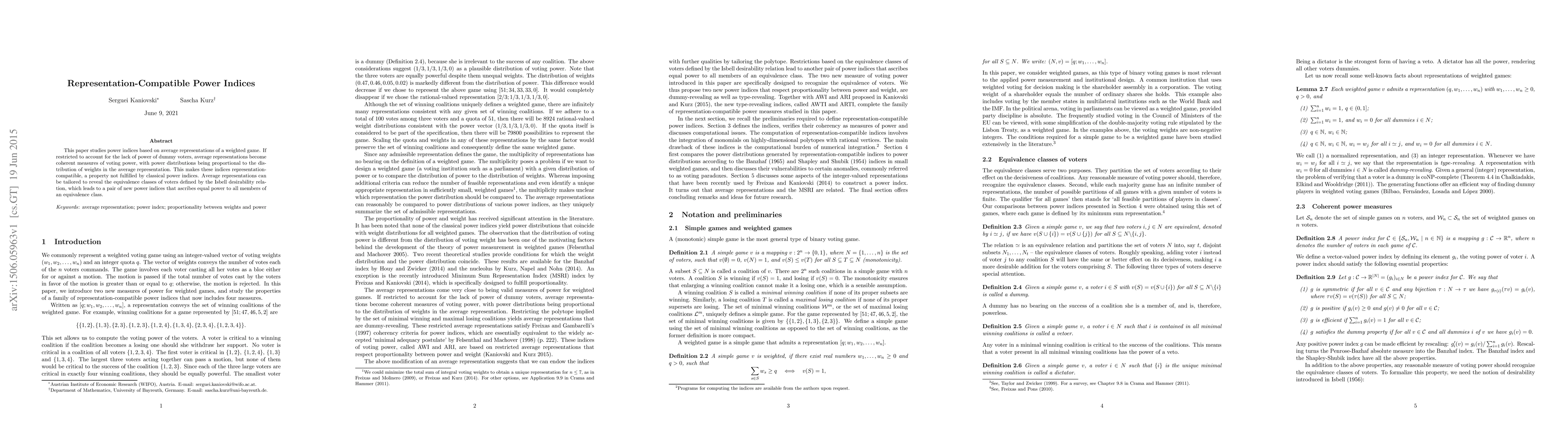 This paper studies power indices based on average representations of a weighted game. If restricted to account for the lack of power of dummy voters, average representations become coherent measures of voting power, with power distributions being proportional to the distribution of weights in the average representation. This makes these indices representation-compatible, a property not fulfilled by classical power indices. Average representations can be tailored to reveal the equivalence classes of voters defined by the Isbell desirability relation, which leads to a pair of new power indices that ascribes equal power to all members of an equivalence class.