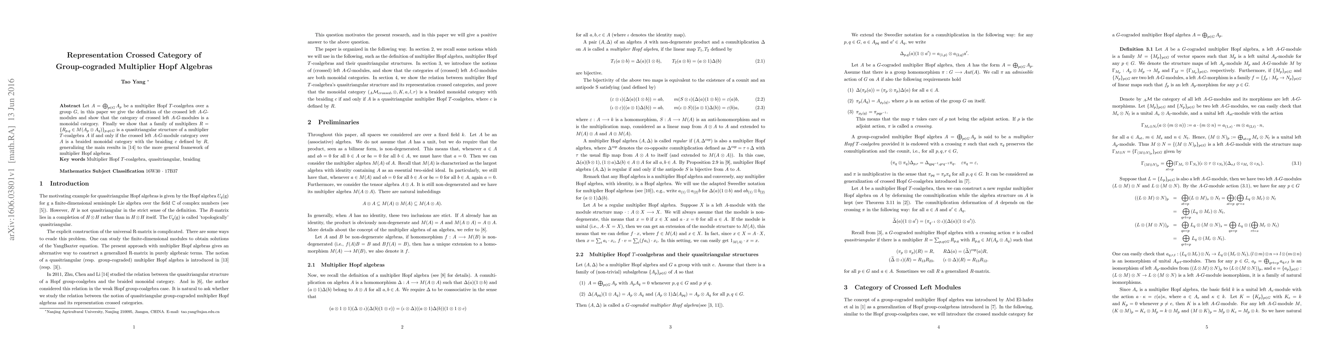 Let $A=\bigoplus_{p\in G}A_{p}$ be a multiplier Hopf $T$-coalgebra over a group $G$, in this paper we give the definition of the crossed left $A$-$G$-modules and show that the category of crossed left $A$-$G$-modules is a monoidal category. Finally we show that a family of multipliers $R = \{R_{p, q} \in M(A_{p}\otimes A_{q})\}_{p, q\in G}$ is a quasitriangular structure of a multiplier $T$-coalgebra $A$ if and only if the crossed left $A$-$G$-module category over $A$ is a braided monoidal category with the braiding $c$ defined by $R$, generalizing the main results in \cite{ZCL11} to the more general framework of multiplier Hopf algebras.