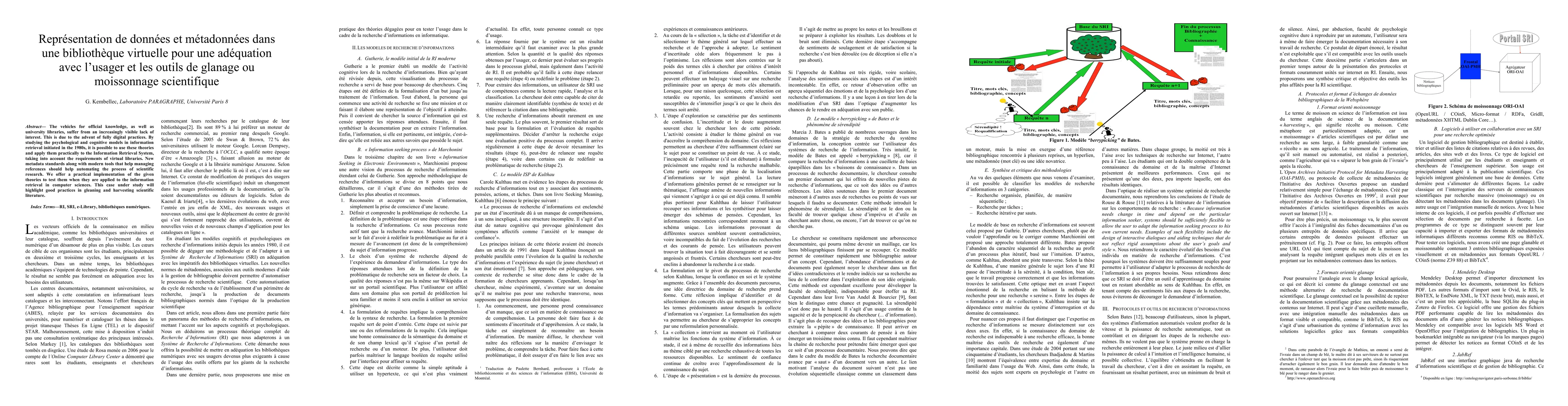 The vehicles for official knowledge, as well as university libraries, suffer from an increasingly visible lack of interest. This is due to the advent of fully digital practices. By studying the psychological and cognitive models in information retrieval initiated in the 1980s, it is possible to use these theories and apply them practically to the Information Retrieval System, taking into account the requirements of virtual libraries. New metadata standards along with modern tools that help managing references should help automating the process of scientific research. We offer a practical implementation of the given theories to test them when they are applied to the information retrieval in computer sciences. This case under study will highlight good practices in gleaning and harvesting scientific literature.