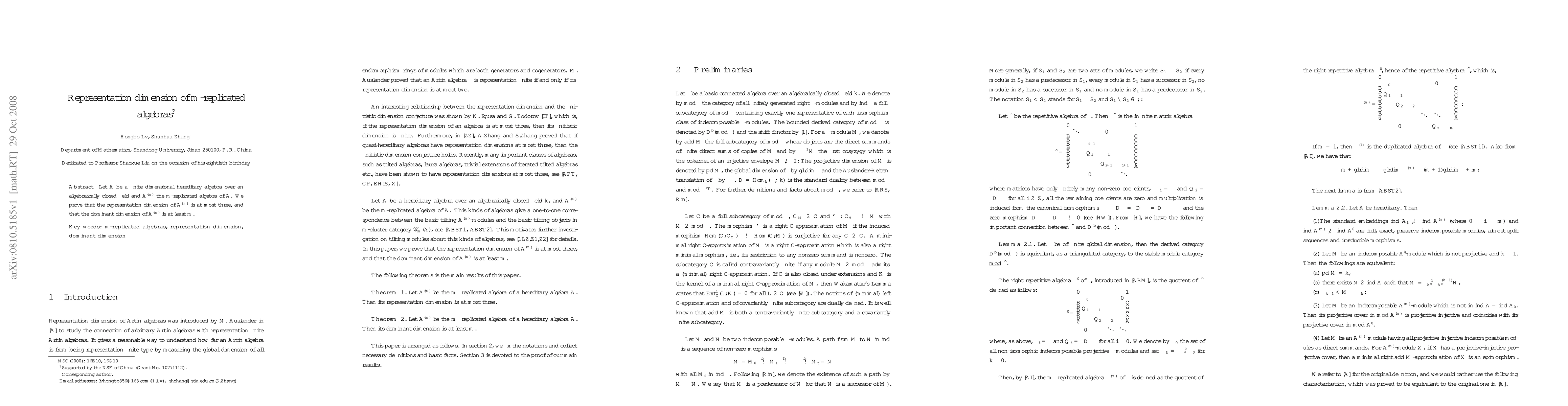 Let $A$ be a finite dimensional hereditary algebra over an algebraically closed field and $A^{(m)}$ the $m$-replicated algebra of $A$. We prove that the representation dimension of $A^{(m)}$ is at most three, and that the dominant dimension of $A^{(m)}$ is at least $m$.
