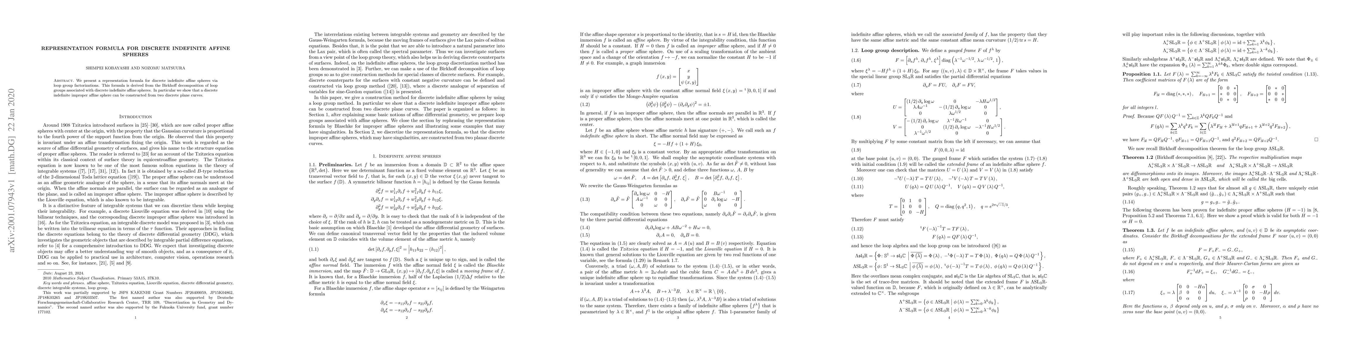 This paper introduces a representation formula for discrete indefinite affine spheres using loop group factorizations, derived from the Birkhoff decomposition of loop groups. It demonstrates that such spheres can be constructed from two discrete plane curves.