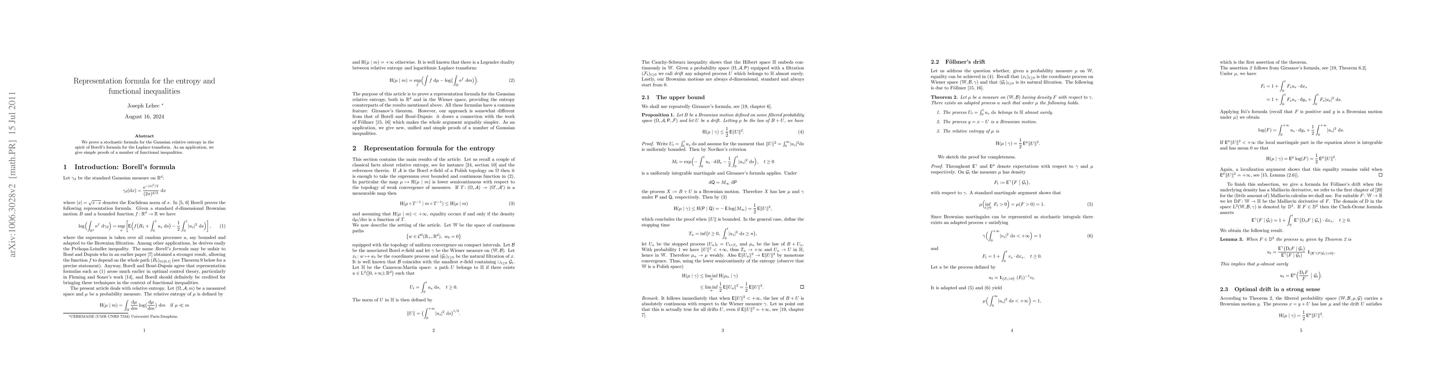 We prove a stochastic formula for the Gaussian relative entropy in the spirit of Borell's formula for the Laplace transform. As an application, we give unified and short proofs of a number of functional inequalities.