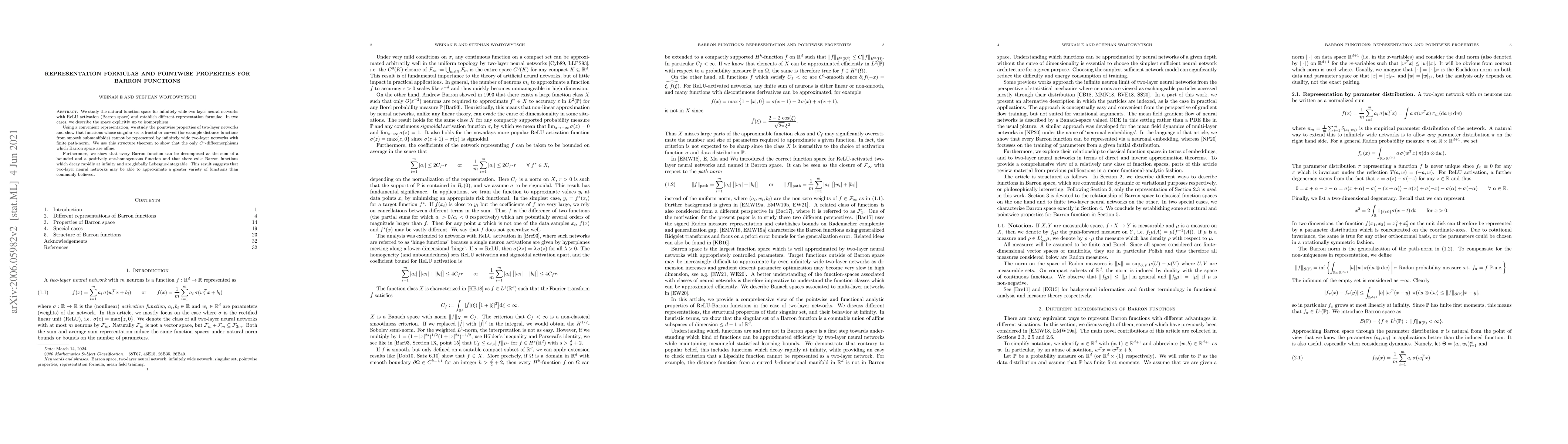 This paper explores the properties of Barron functions, a natural function space for two-layer neural networks with ReLU activation, revealing that certain types of functions can be represented but others cannot, and suggesting that these networks may approximate a wider variety of functions than thought.