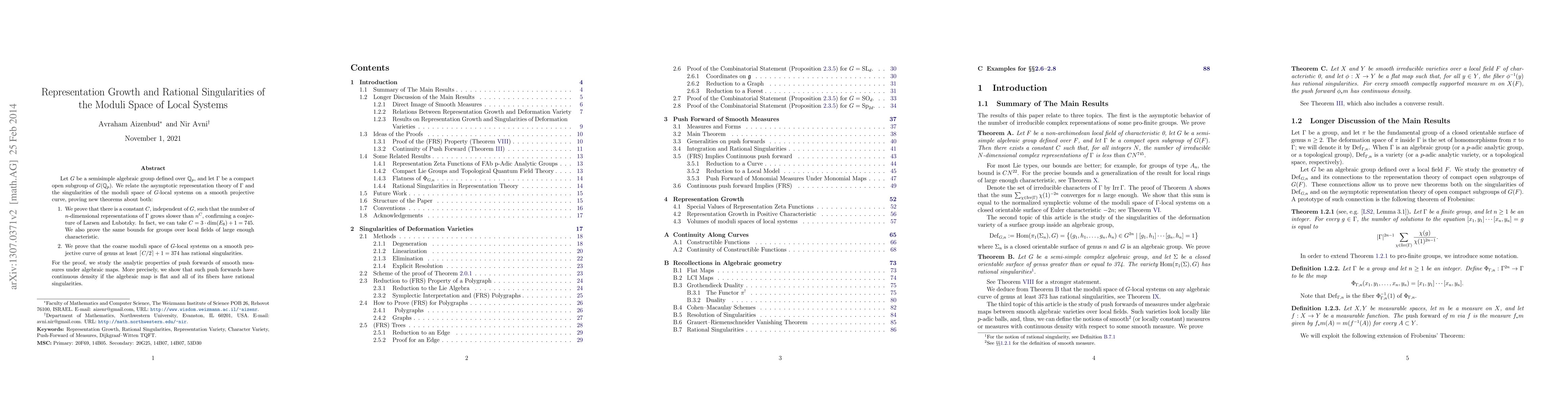We relate the asymptotic representation theory of $SL(d,\mathbb{Z}_p)$ and the singularities of the moduli space of $SL(d)$-local systems on a smooth projective curve, proving new theorems about both. Regarding the former, we prove that, for every d, the number of n-dimensional representations of $SL(d,\mathbb{Z}_p)$ grows slower than $n^{22}$, confirming a conjecture of Larsen and Lubotzky. Regarding the latter, we prove that the moduli space of $SL(d)$-local systems on a smooth projective curve of genus at least 12 has rational singularities. Most of our results apply more generally to semi-simple algebraic groups. For the proof, we study the analytic properties of push forwards of smooth measures under algebraic maps. More precisely, we show that such push forwards have continuous density if the algebraic map is flat and all of its fibers have rational singularities.