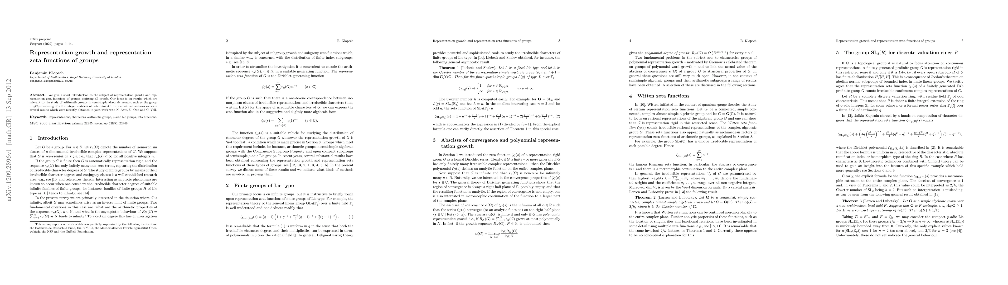 This paper introduces representation growth and representation zeta functions in groups, focusing on their relevance for arithmetic groups in semisimple algebraic groups, particularly the special linear group over the integers. The authors also present recent joint results with N. Avni, U. Onn, and C. Voll.