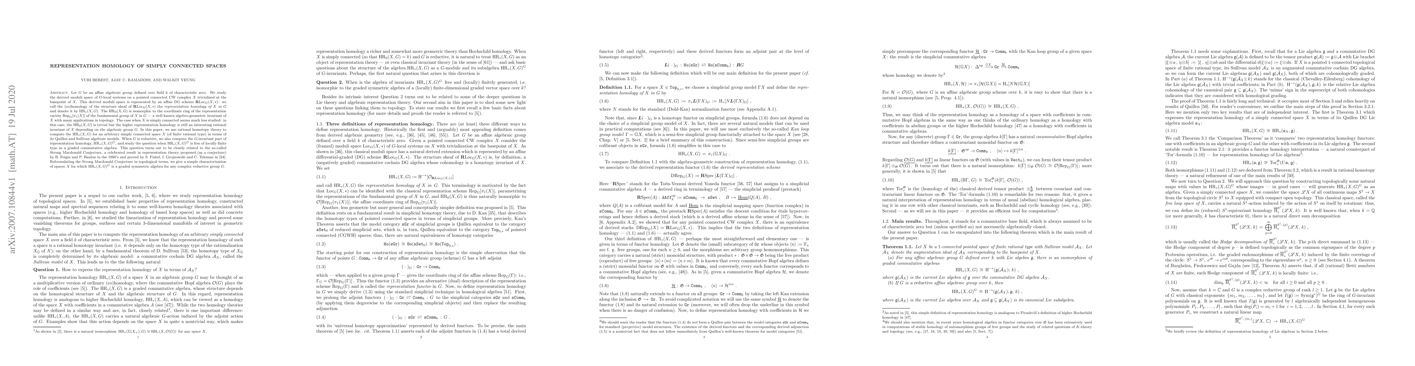 This paper explores the representation homology HR$_*(X,G)$ of simply connected spaces $X$ using rational homotopy theory. It connects the higher representation homology to Quillen and Sullivan models and investigates $G$-invariant parts, linking these findings to the Strong Macdonald Conjecture in representation theory.