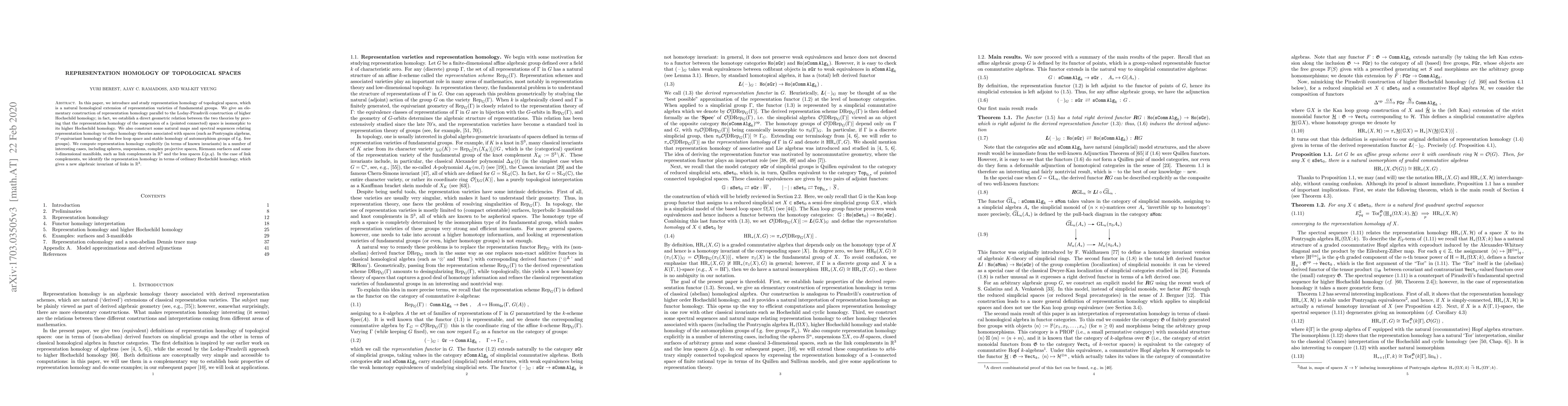 This paper introduces representation homology of topological spaces, linking it to higher Hochschild homology and providing explicit computations for various spaces, including link complements, thereby offering a new algebraic invariant for links in $\R^3$. It also establishes connections to other homology theories and constructs natural maps and spectral sequences.