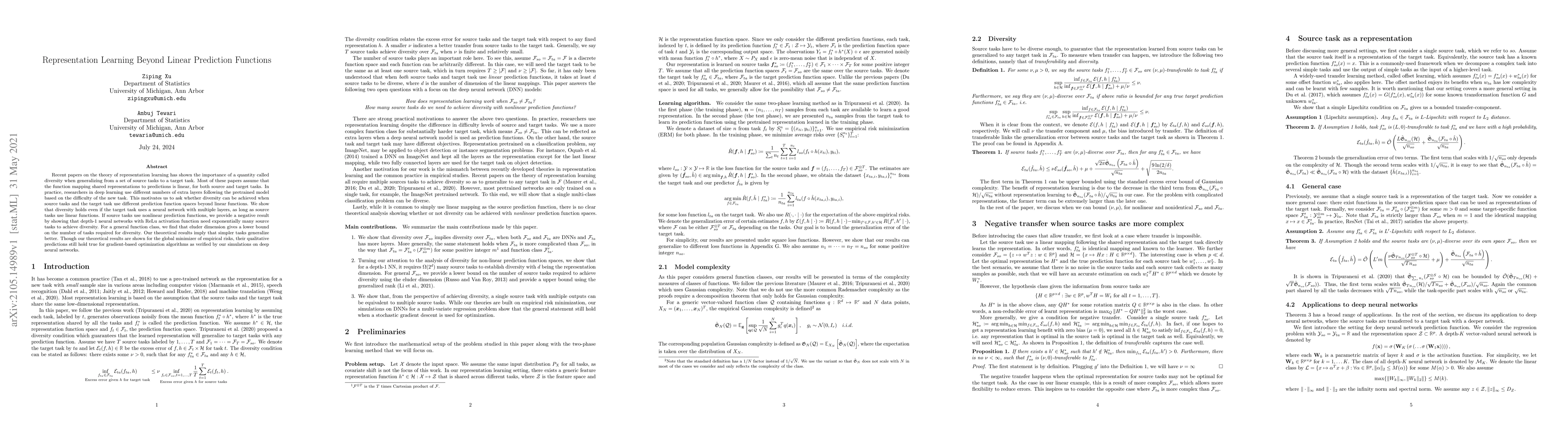Researchers found that diversity in representation learning can be achieved even when source tasks use nonlinear prediction functions and target tasks use neural networks with multiple layers. This suggests simpler tasks generalize better.