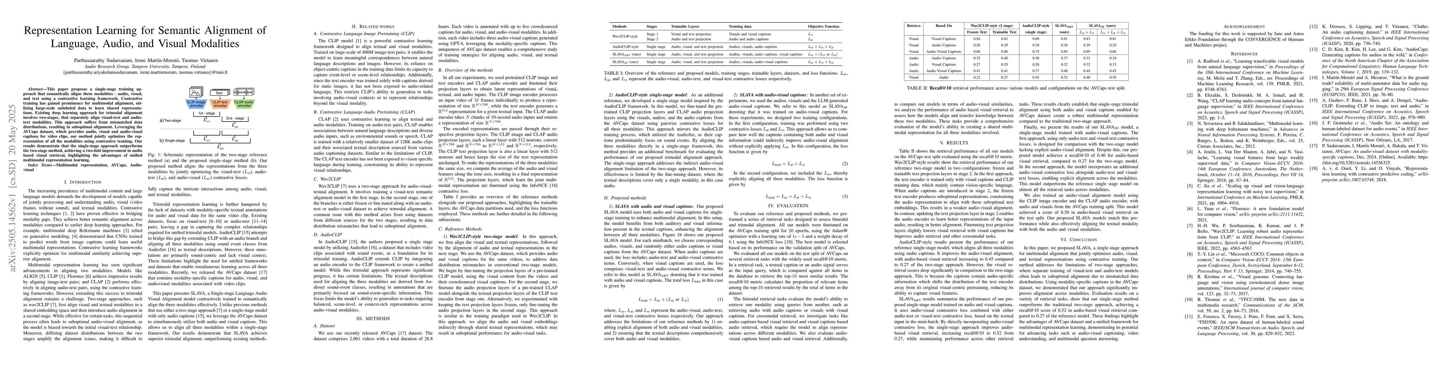 The paper proposes a single-stage training approach using a contrastive learning framework to semantically align audio, visual, and text modalities, jointly optimizing their representations on the AVCaps dataset.