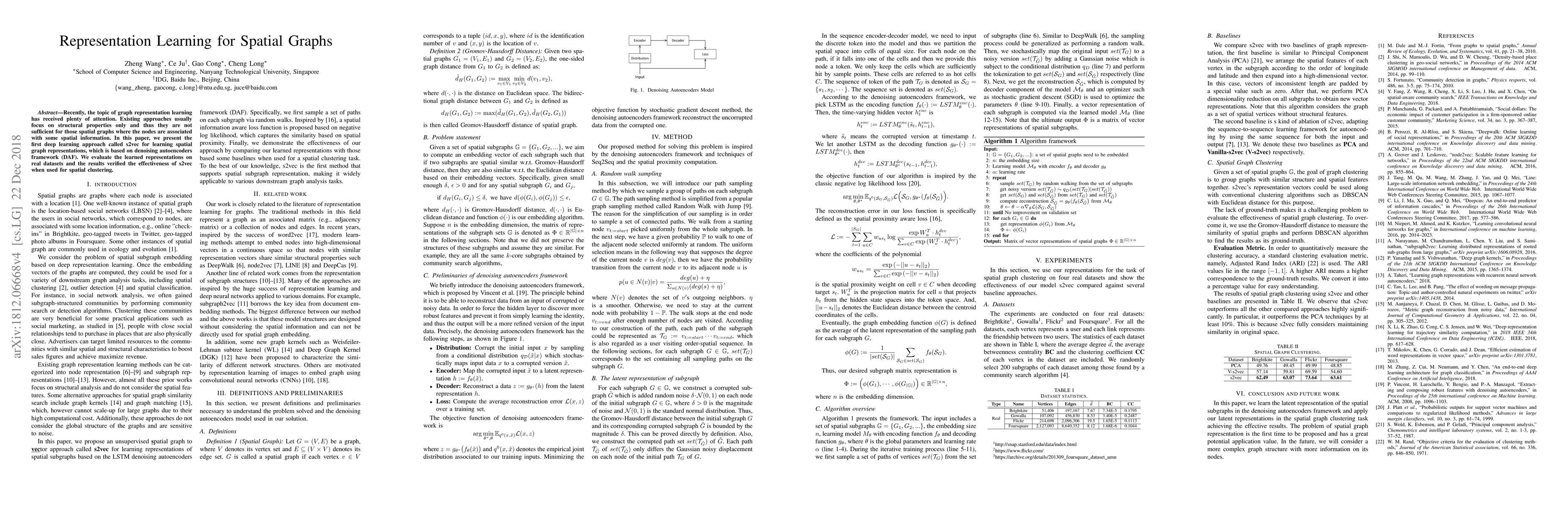The work presents a novel approach to spatial graph representation, which differs from existing methods in its use of autoencoders and focus on graph structure.