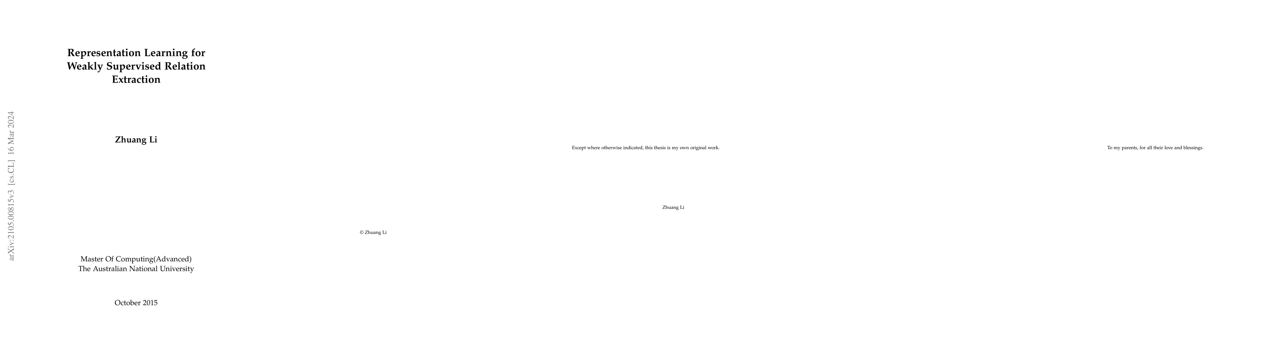 This paper explores methods for improving weakly supervised relation extraction using unsupervised pre-training to learn distributed text representation features, addressing the challenge of limited labeled data. The integration of these learned features with traditional hand-crafted features enhances the performance of logistic classification models, particularly for relations with sparse training data.