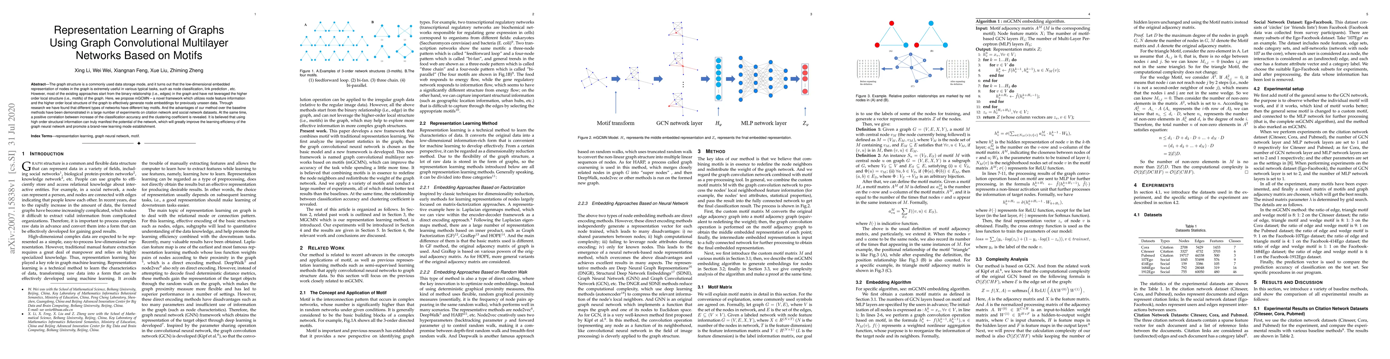 A new framework, mGCMN, uses node feature information and graph motifs to generate effective node embeddings, improving learning efficiency in graph neural networks. It shows a positive correlation between increased classification accuracy and clustering coefficient.