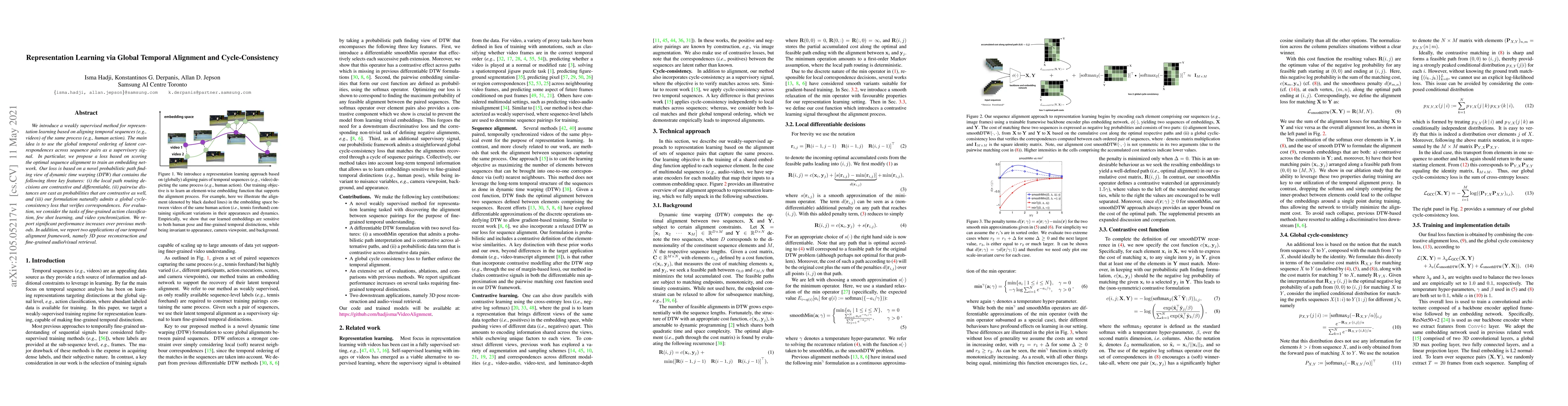 This paper presents a weakly supervised method for representation learning using temporal alignment and cycle-consistency to embed sequences like videos. The proposed loss function leverages global temporal ordering and probabilistic dynamic time warping to enhance network training, achieving notable improvements in action classification, few-shot learning, and video synchronization.