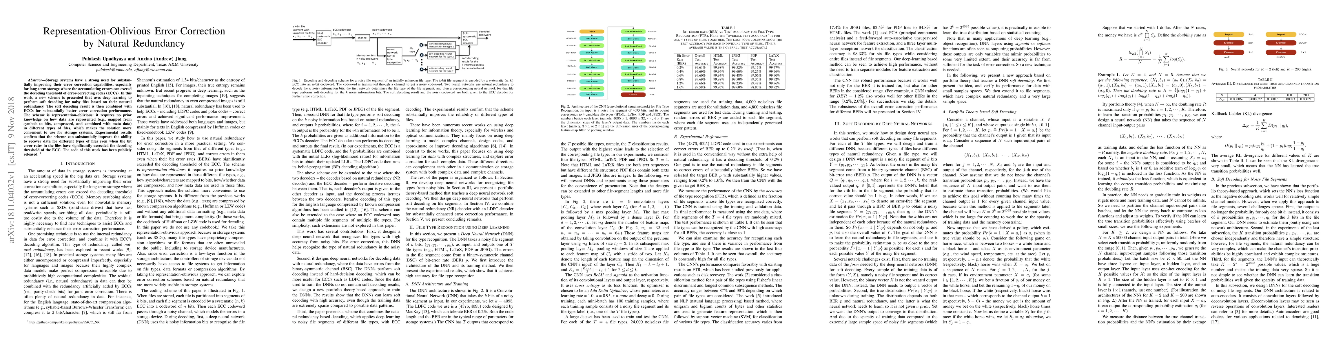 This paper introduces a deep learning-based scheme for enhancing error correction in storage systems by leveraging natural redundancy in files, combined with traditional error-correcting codes for improved performance. The proposed method is representation-oblivious, making it versatile for various file types without requiring specific data representation knowledge.