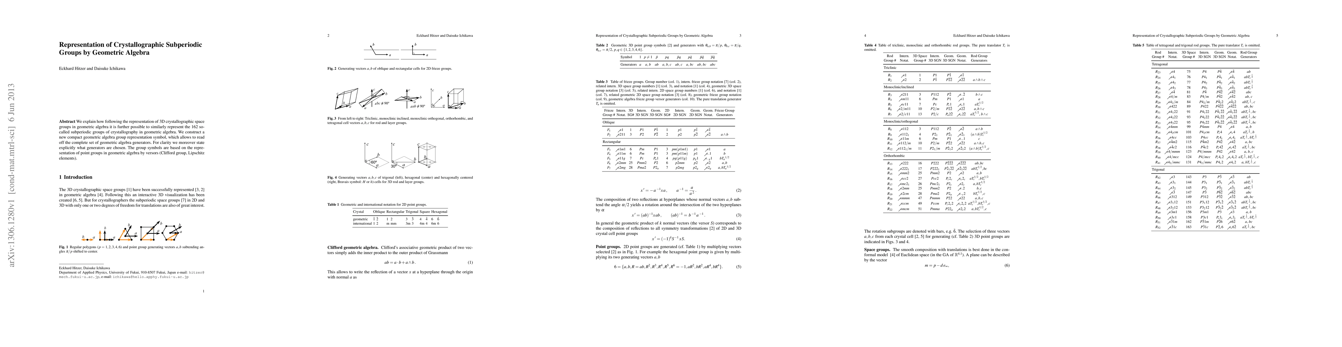 Two-Line Summary: This paper presents a method to represent the 162 subperiodic crystallographic groups using geometric algebra, extending the approach used for 3D crystallographic space groups. It introduces a new compact representation symbol based on versors, enabling clear identification of the complete set of geometric algebra generators for these groups.
