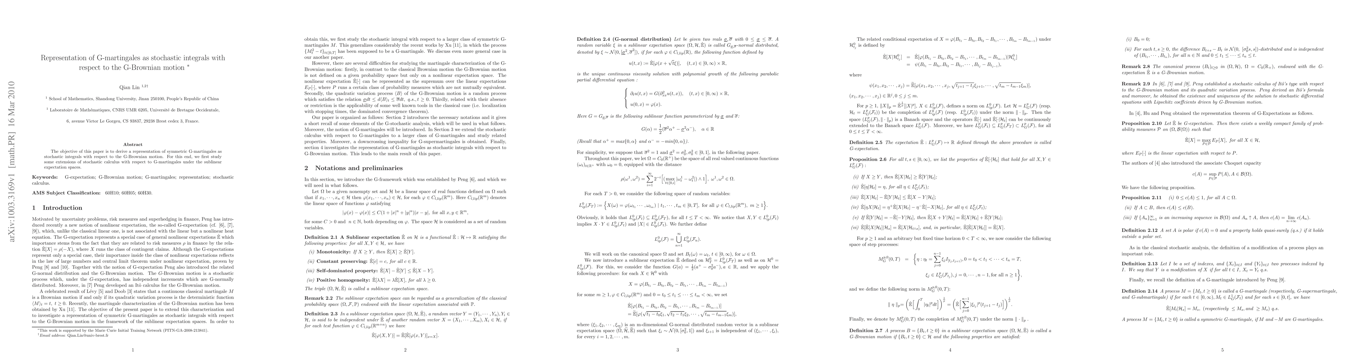 Summary: This paper derives a representation of symmetric G-martingales as stochastic integrals with respect to the G-Brownian motion, utilizing extensions of stochastic calculus within sublinear expectation spaces. The methodology involves studying the properties of G-martingales under these advanced mathematical frameworks.