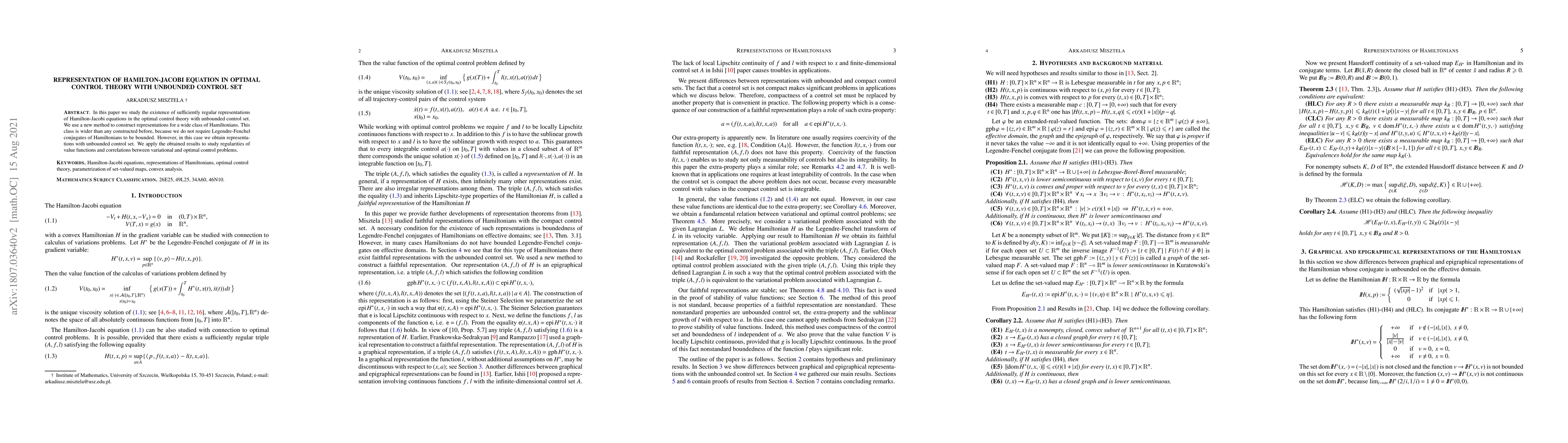 This paper explores the existence of regular representations of Hamilton-Jacobi equations in optimal control theory for systems with unbounded control sets, employing a novel method that extends beyond previously required boundedness conditions. The results are applied to analyze the properties of value functions and the relationships between variational and optimal control problems.