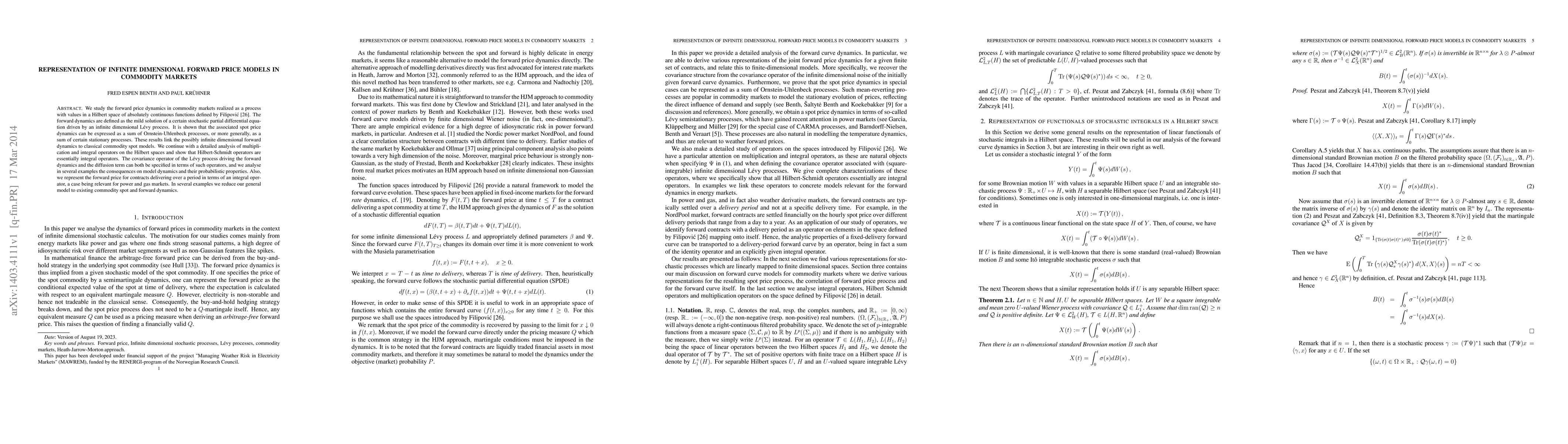 This paper explores forward price dynamics in commodity markets using infinite-dimensional stochastic processes, showing that spot price dynamics can be represented as sums of Ornstein-Uhlenbeck processes. It analyzes multiplication and integral operators on Hilbert spaces, linking the forward dynamics to classical commodity models and examining their probabilistic properties.