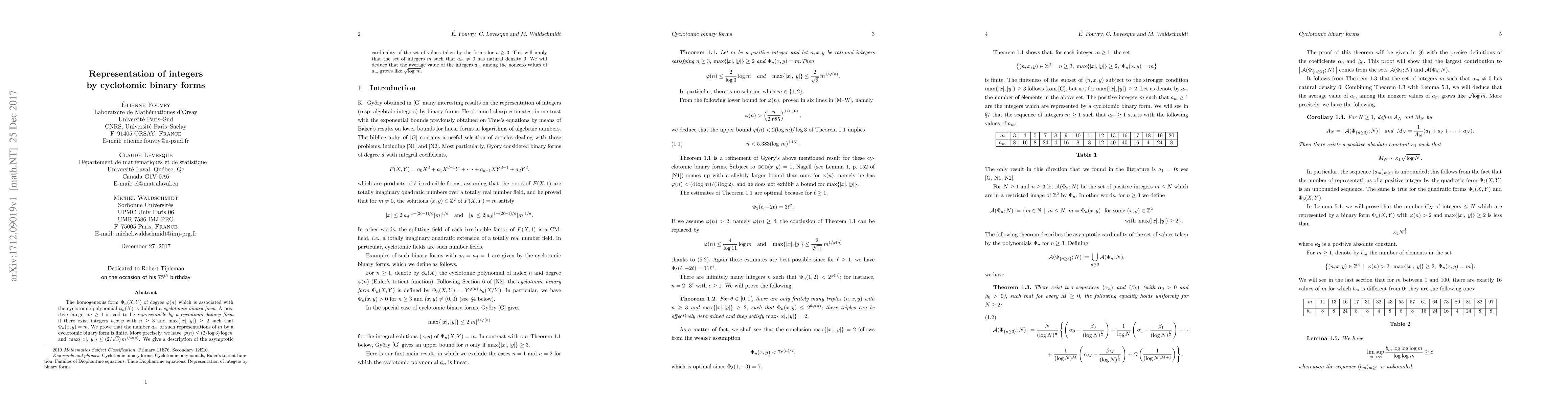 This paper investigates the representation of integers by cyclotomic binary forms, proving that the number of such representations is finite. It establishes bounds on the degree and magnitude of the integers involved, and shows that the set of representable integers has natural density 0, with the average value of nonzero representations growing like $\sqrt{\log \, m}$.
