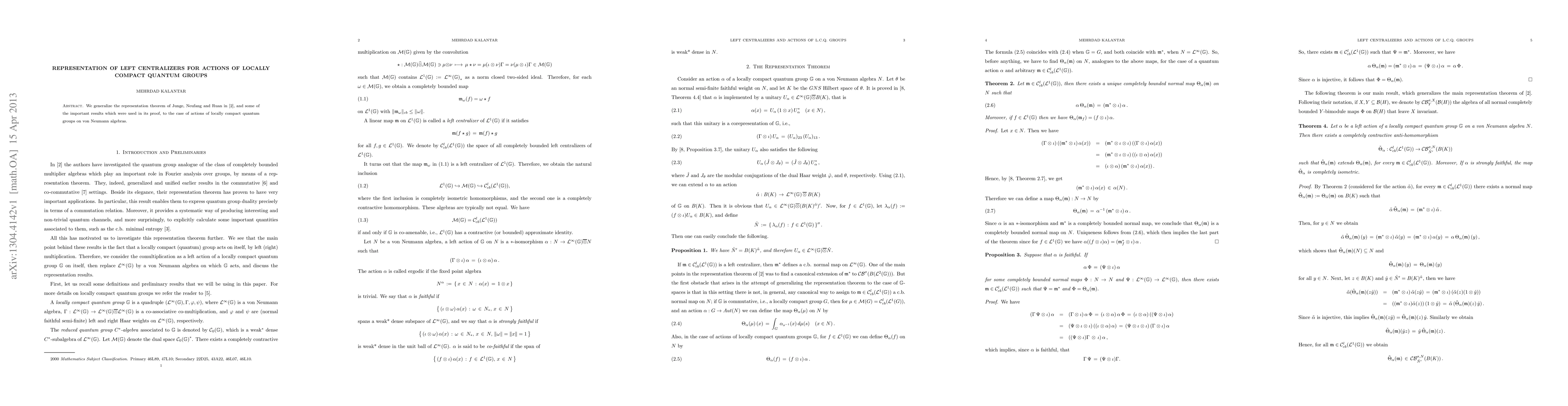 This paper generalizes the representation theorem for locally compact quantum groups to actions on von Neumann algebras, extending the foundational results used in the original proof by Junge, Neufang, and Ruan.