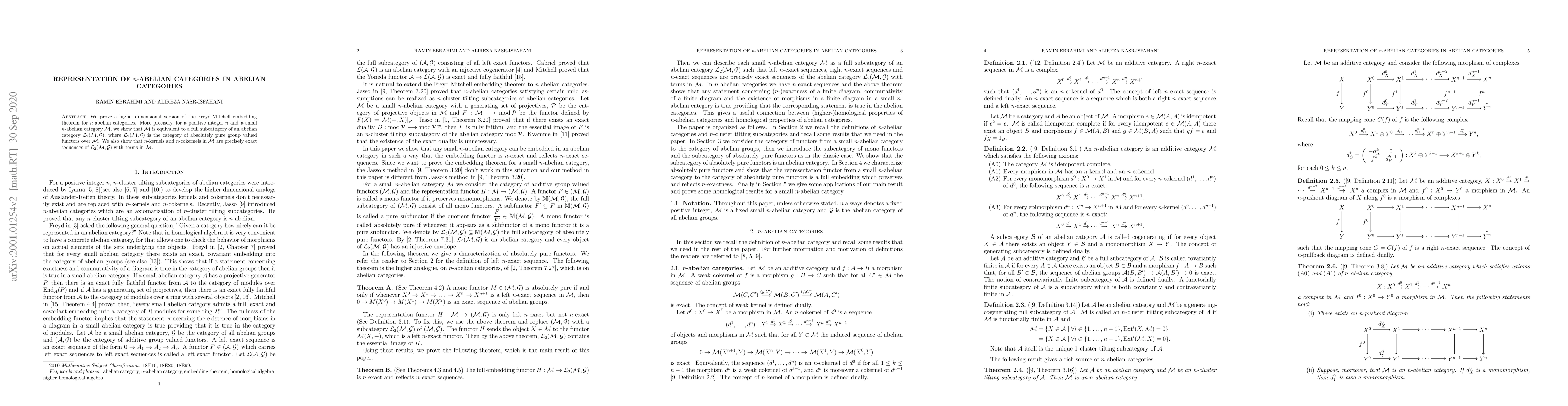 Let $\mathcal{M}$ be a small $n$-abelian category. We show that the category of absolutely pure group valued functors over $\mathcal{M}$, denote by $\mathcal{L}_2(\mathcal{M},\mathcal{G})$, is an abelian category and $\mathcal{M}$ is equivalent to a full subcategory of $\mathcal{L}_2(\mathcal{M},\mathcal{G})$ in such a way that $n$-kernels and $n$-cokernels are precisely exact sequences of $\mathcal{L}_2(\mathcal{M},\mathcal{G})$ with terms in $\mathcal{M}$. This gives a higher-dimensional version of the Freyd-Mitchell embedding theorem for $n$-abelian categories.