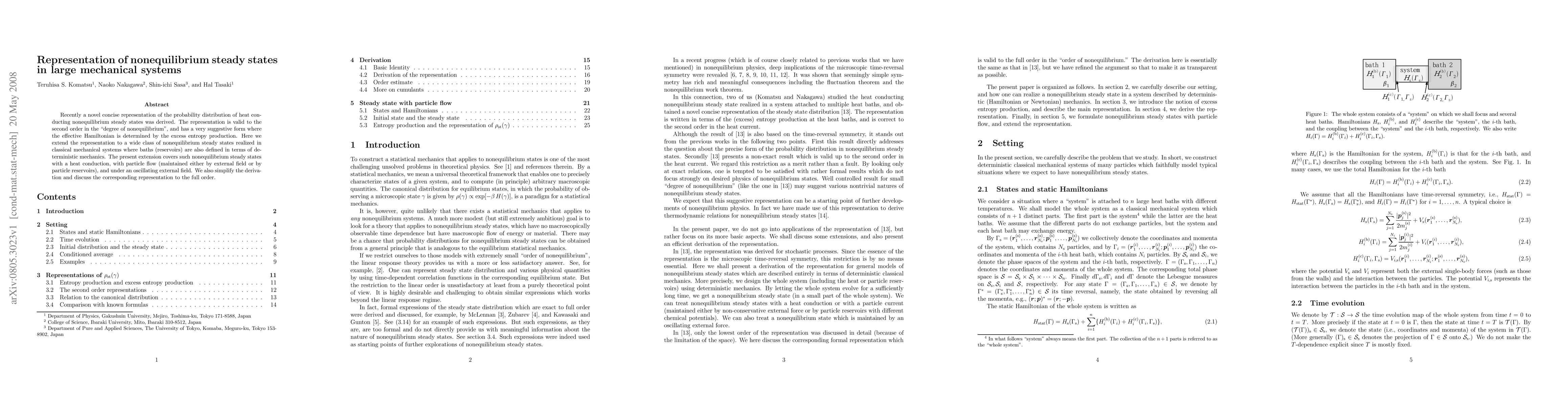 The paper extends a novel representation for the probability distribution of heat-conducting nonequilibrium steady states to a broad range of classical mechanical systems, encompassing states with heat conduction, particle flow, and under oscillating fields. The effective Hamiltonian is defined via excess entropy production, and the derivation is simplified for full-order representation.