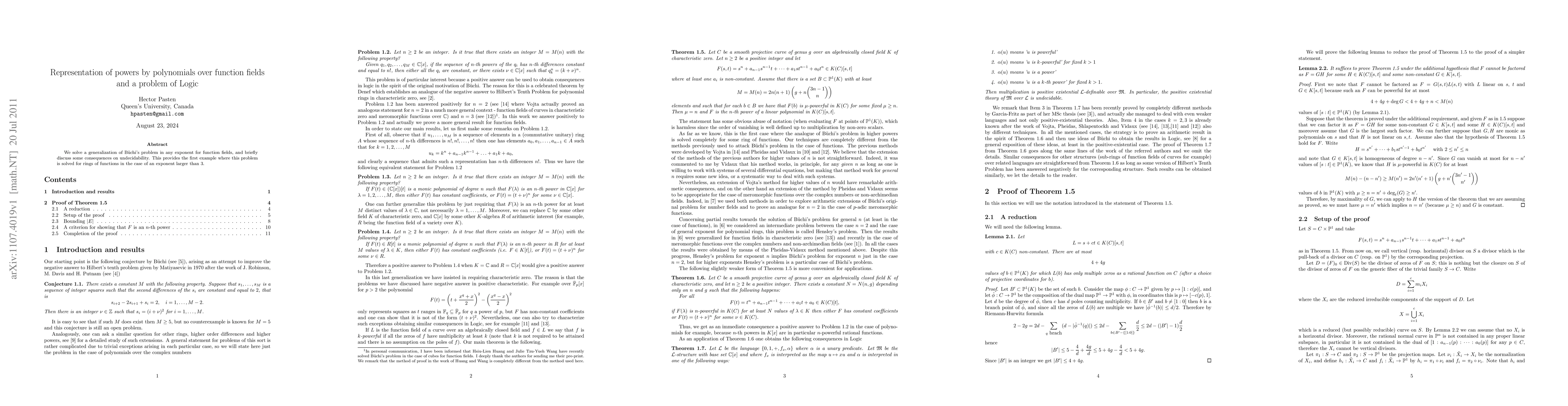 We solve a generalization of B\"uchi's problem in any exponent for function fields, and briefly discuss some consequences on undecidability. This provides the first example where this problem is solved for rings of functions in the case of an exponent larger than 3.