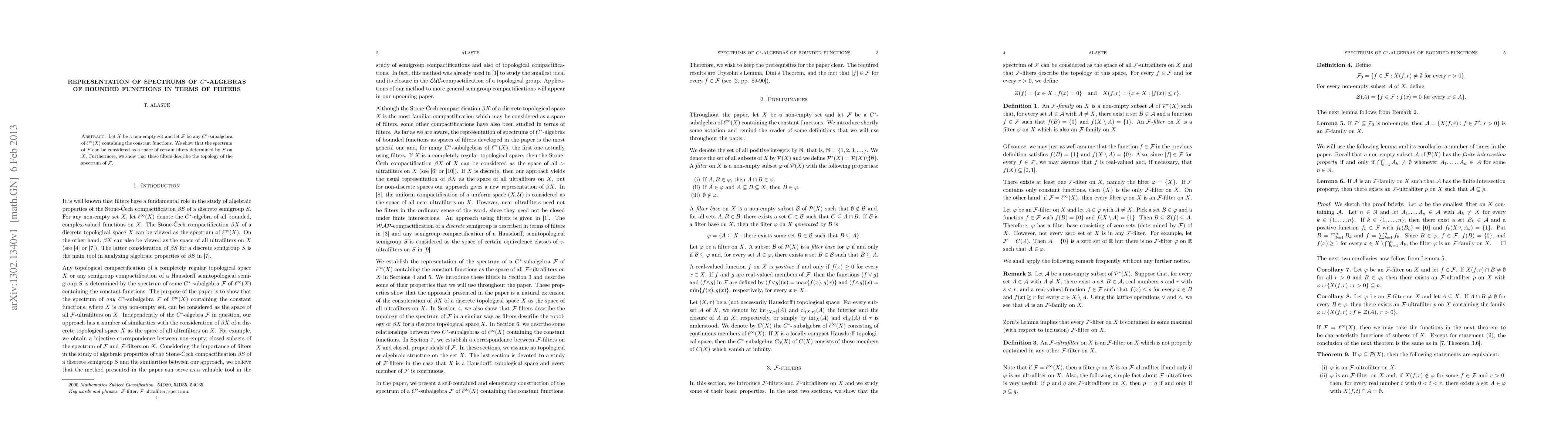 Let $X$ be a non-empty set and let $\mathcal{F}$ be any $C^{\ast}$-subalgebra of $\ell ^{\infty}(X)$ containing the constant functions. We show that the spectrum of $\mathcal{F}$ can be considered as a space of certain filters determined by $\mathcal{F}$ on $X$. Furthermore, we show that these filters describe the topology of the spectrum of $\mathcal{F}$.