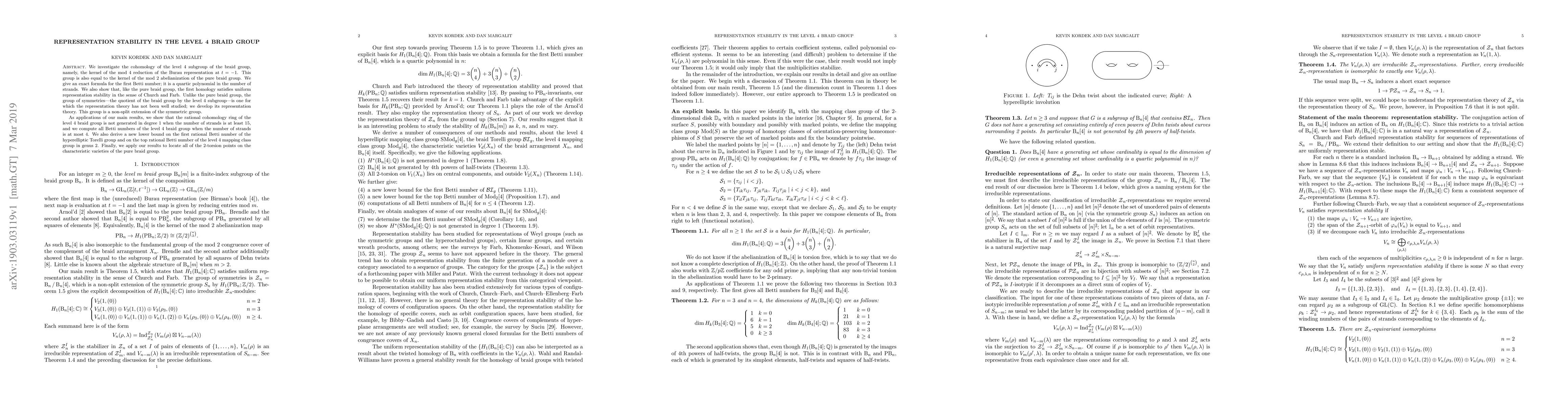 This paper explores the cohomology and representation stability of the level 4 subgroup of the braid group, deriving an exact formula for its first Betti number and proving uniform representation stability. It also develops the representation theory of the quotient group, which is a non-split extension of the symmetric group, and provides applications including computations of Betti numbers and lower bounds on related groups.