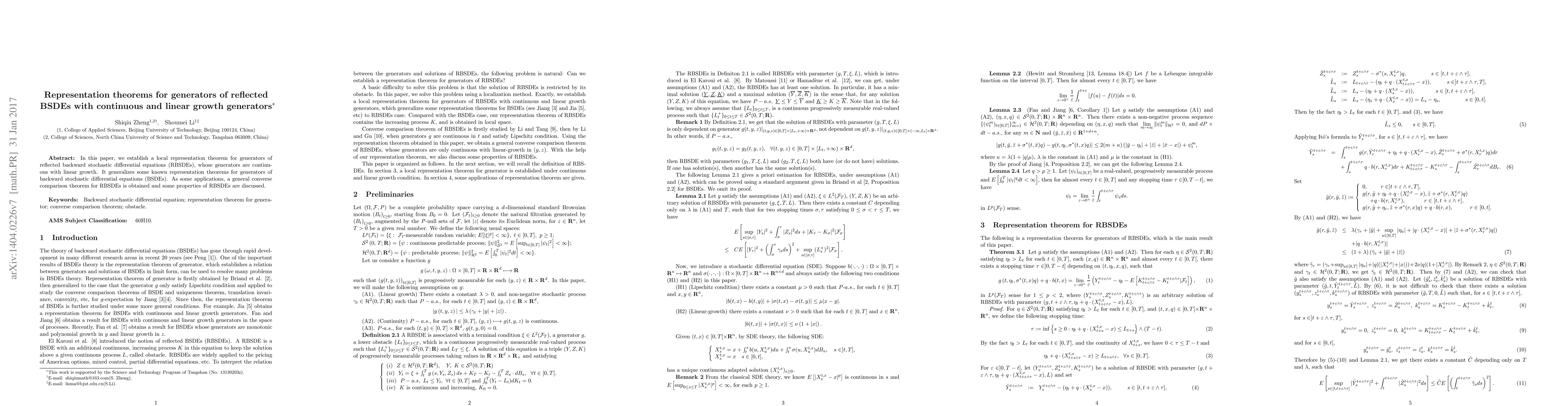 This paper establishes a local representation theorem for continuous, linear-growth generators of reflected backward stochastic differential equations (RBSDE). It generalizes existing representation theorems for BSDE generators and provides a general converse comparison theorem for RBSDE.