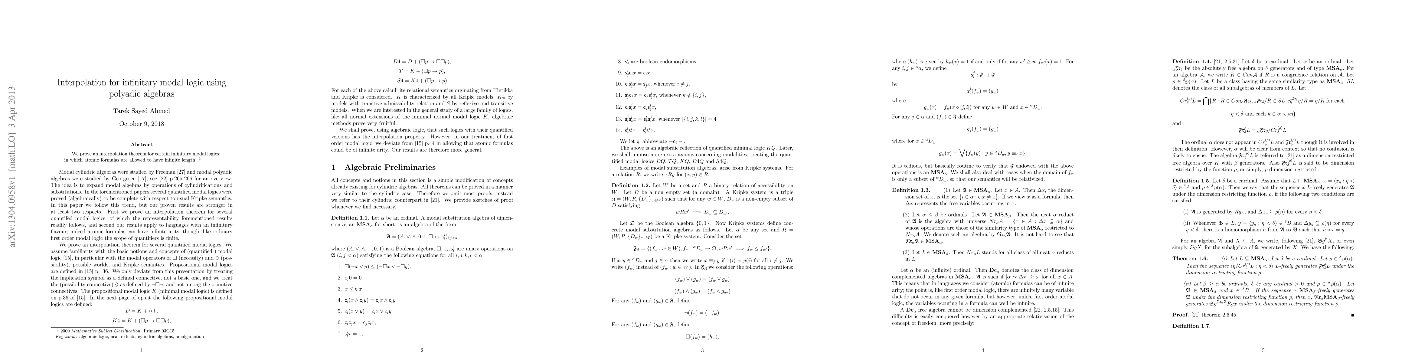 Summary: This paper establishes representation theorems for infinitary predicate modal logic, utilizing techniques from algebraic logic to provide structural proofs and insights into the logic's formal properties. The findings enhance our understanding of the logical framework and its algebraic representations.
