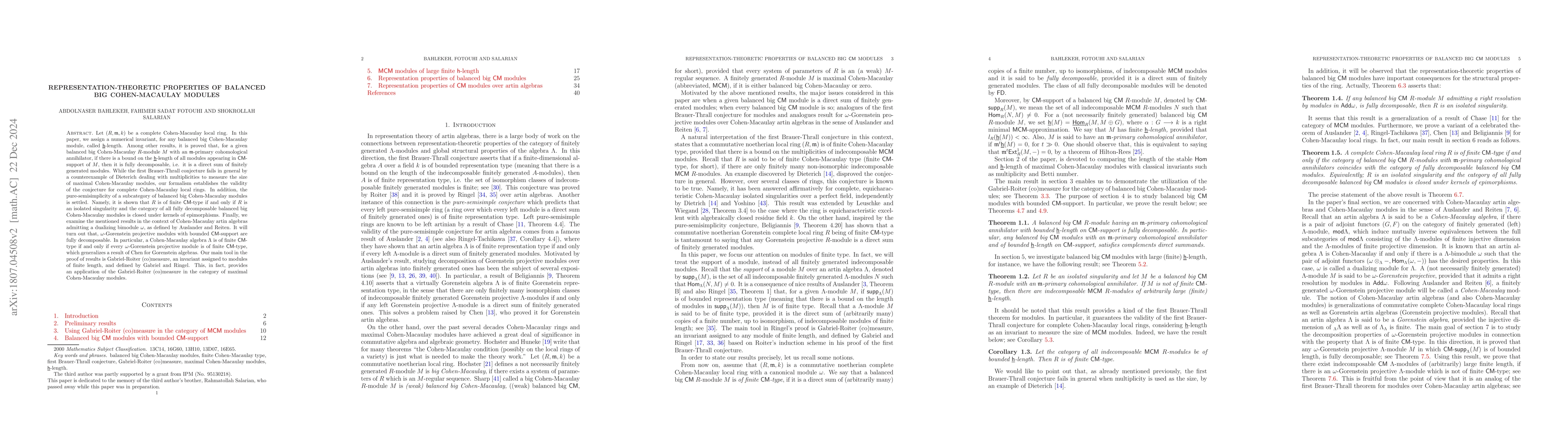 This paper explores the representation-theoretic properties of balanced big Cohen-Macaulay modules in complete Cohen-Macaulay local rings, introducing a numerical invariant called $\uh$-length. It proves that if $\uh$-length is bounded in the $\CM$-support of a module, the module is fully decomposable. The study also validates the first Brauer-Thrall conjecture for such rings and establishes the pure-semisimplicity of a subcategory of balanced big Cohen-Macaulay modules, showing finite $\CM$-type correspondence.